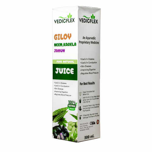 Vedicflex Giloy Neem Karela Jamun Juice is a 100% natural Ayurvedic herbal juice that supports immunity, blood sugar balance, and overall wellness